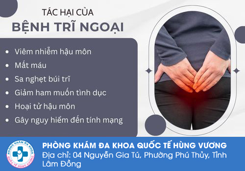 Gây nguy hiểm đến tính mạng: Bệnh trĩ ngoại không được phát hiện và chữa trị kịp thời sẽ biến chứng thành ung thư trực tràng. Đây là bệnh có nguy cơ tử vong rất cao.