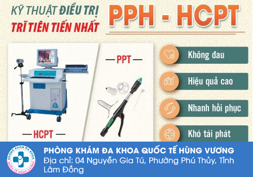 Phương pháp HCPT: Là phương pháp được áp dụng trong điều trị các dạng trĩ ngoại, trĩ hỗn hợp, trĩ vòng. HCPT sử dụng sóng điện cao tần để loại bỏ búi trĩ và tái tạo loại hậu môn, không để lại sẹo, không ảnh hưởng đến chức năng sinh lý hậu môn.